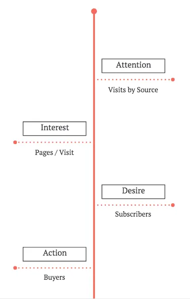 You get first-time visitors and repeat offenders (Attention). If they like what they see, they’ll spend some time reading through your content (Interest). Then, they’ll turn into micro-conversions on their way to becoming a sale (Desire). Finally, they’ll hand over their payment information and become a customer (Action).