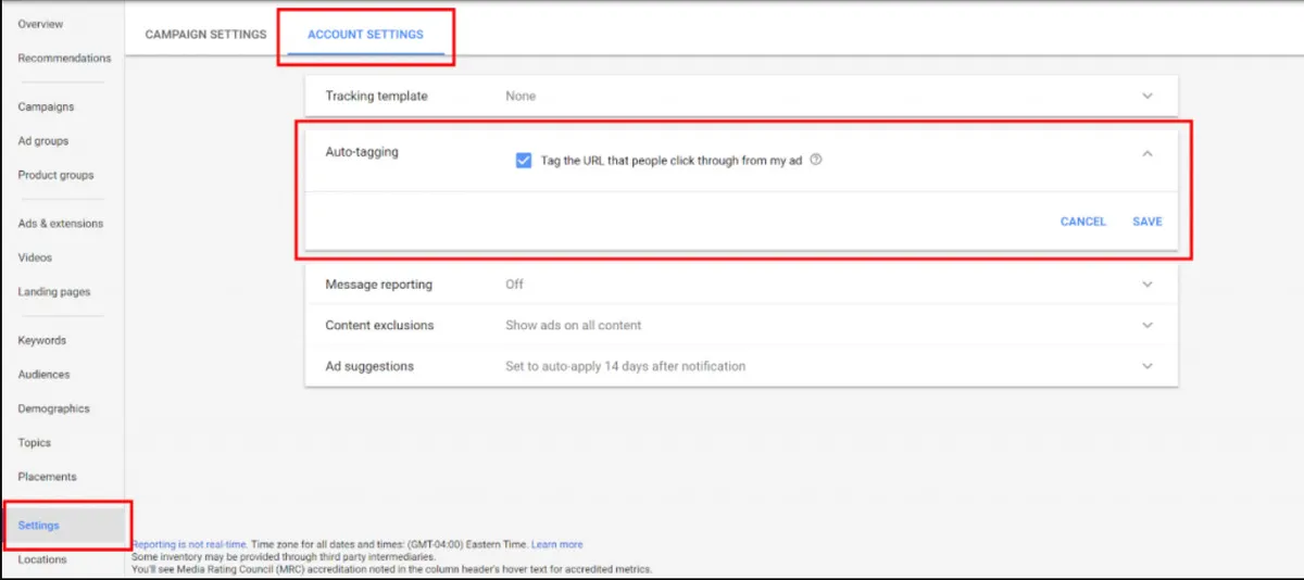 Auto tagging provides richer data through reports for Hour of Day, Placements, Display Targeting, Video Campaigns, and Shopping Campaigns.