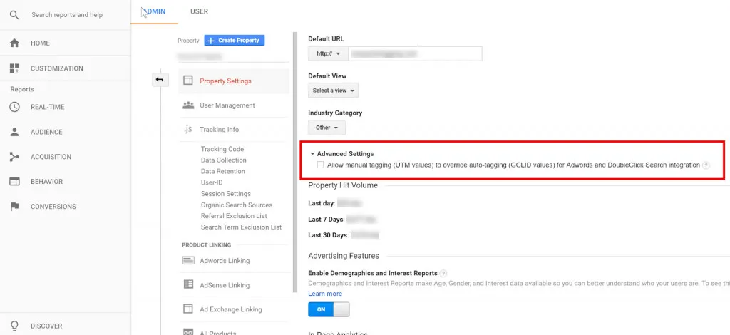 - Click to enable “Allow manual tagging (UTM values) to override auto tagging (GCLID values) for Adwords and DoubleClick Search integration.”