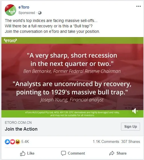 A retargeting ad on Facebook for someone who might be interested in online investments or the stock market.