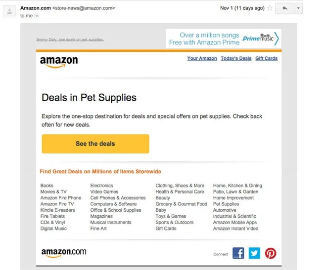 An example of a remarketing email, alerting customers to promotions they might be interested in