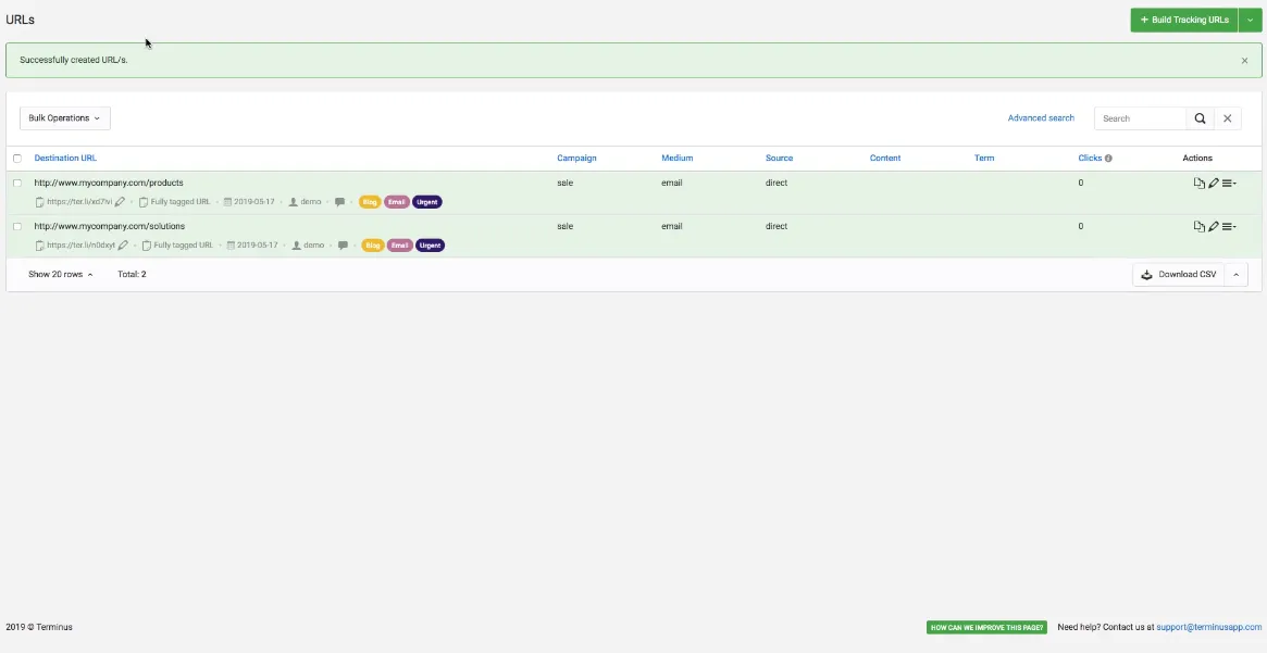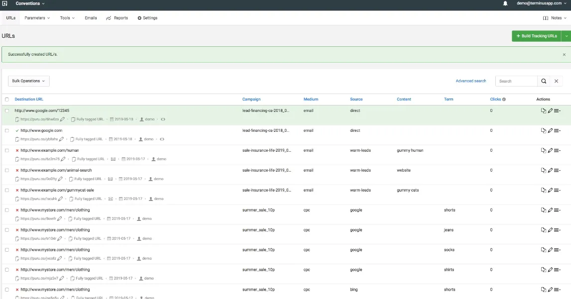 TerminusApp is a comprehensive UTM management tool that provides customizable UTM templates, analytics, and the ability to create and track URLs in bulk.