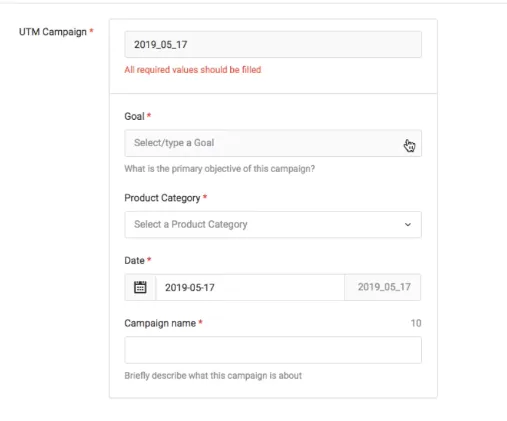 - Once you select the convention, you can configure the UTM campaign accordingly.